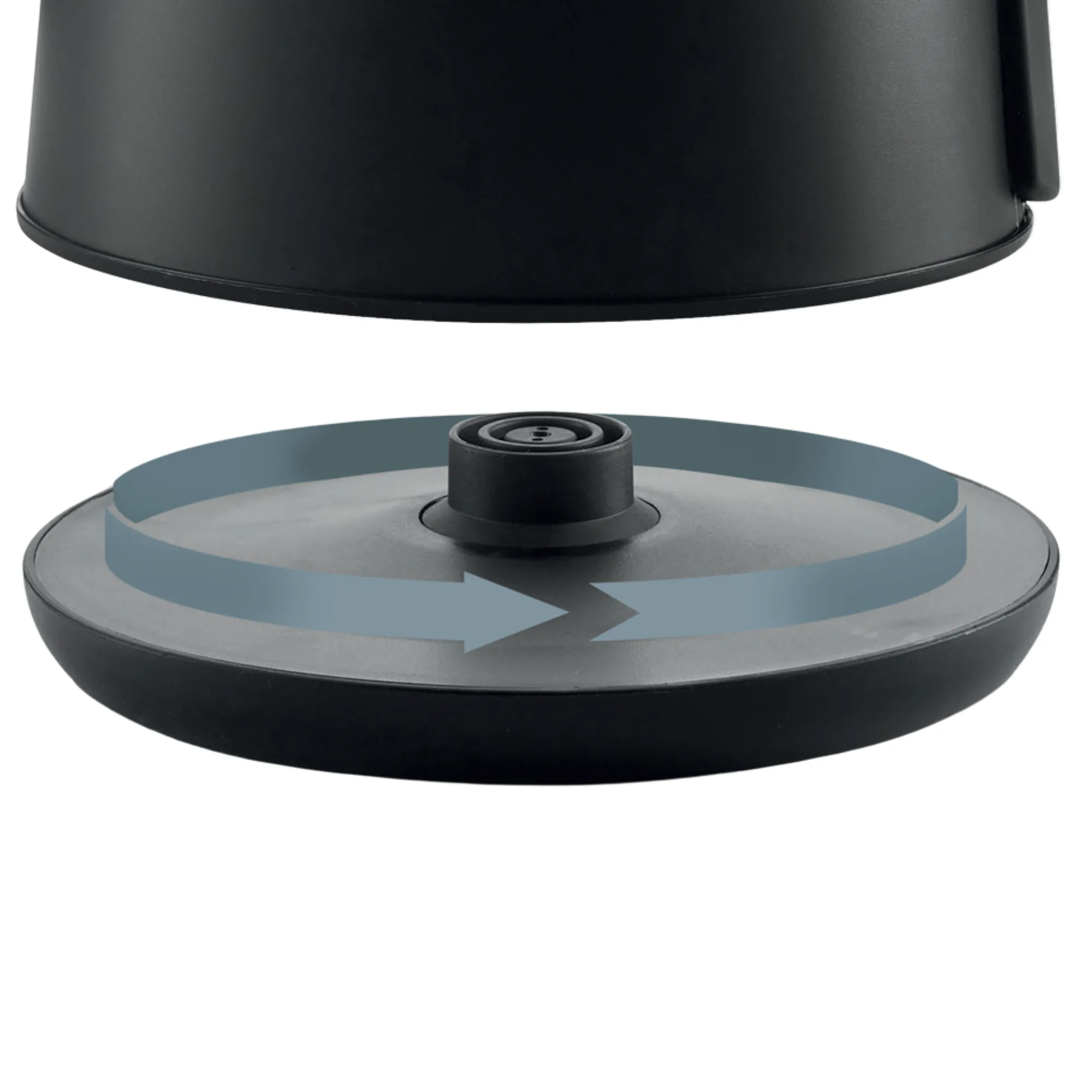 The kettle can be placed on the base from any direction, making it suitable for both left- and right-handed users.